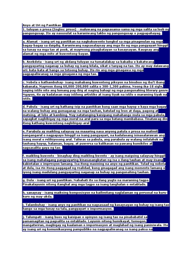Doc Ang Dalawang Uri O Anyo Ng Panitikan Ay Ang Tinatawag Na Tuluyan At Prosa Louise Valdellon Academia Edu