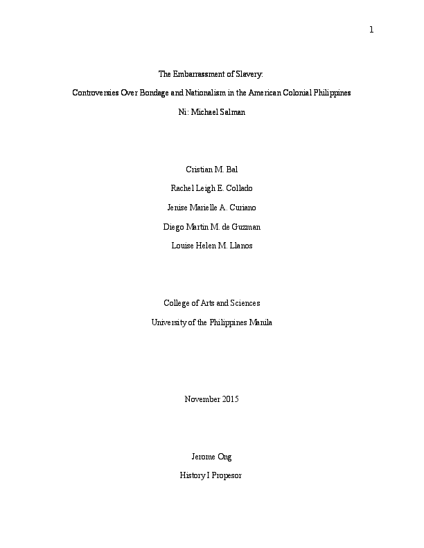 Doc The Embarrassment Of Slavery Controversies Over Bondage And Nationalism In The American Colonial Philippines Jenise Curiano Academia Edu