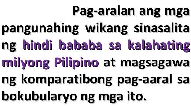 Hanggang ngayon ang Filipino ay tinuturing wikang. Wikang Filipino bilang wikang pambansa wika ng bayan at wika ng edukasyon at pananaliksik Bilang mga tao nagbiyaya ang Panginoon ng isipan upang gamitin at ipalaganap. 570 na ang Pambansang Wika ay magiging isa na sa mga wikang opisyal ng Pilipinas simula sa Hulyo 4 1940 Nilagdaan ni Pang.