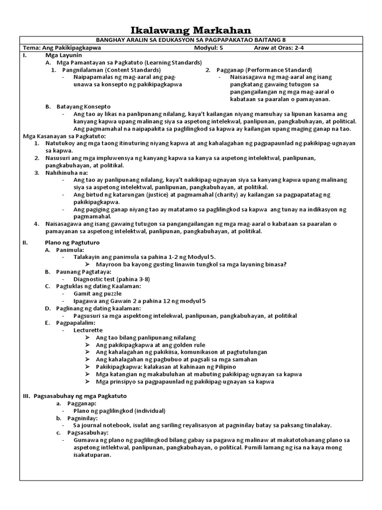 3 Nakabubuo ng mga tamang hakbang sa pagtugon sa mga suliraning dulot ng migrasyon. Day 1 to 3 Natutukoy ang mga dahilan ng migrasyon sa loob at labas ng bansa. Day 4 to 6 Naipaliliwanag ang epekto ng migrasyon sa aspektong panlipunan pampulitika at pangkabuhayan.