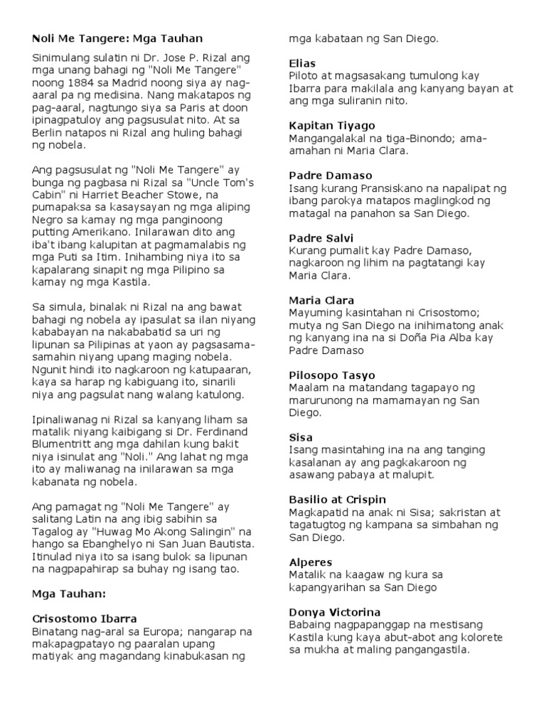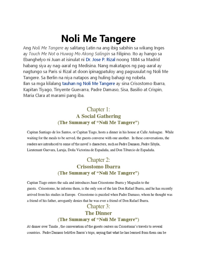 Noli Me Tangere Buod Ng Bawat Kabanata 1 64 With Talasalitaan