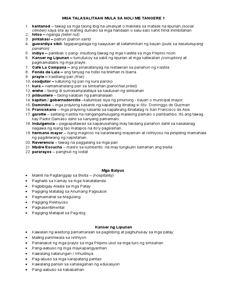 Mga Talasalitaan Mula Sa Noli Me Tangere 1