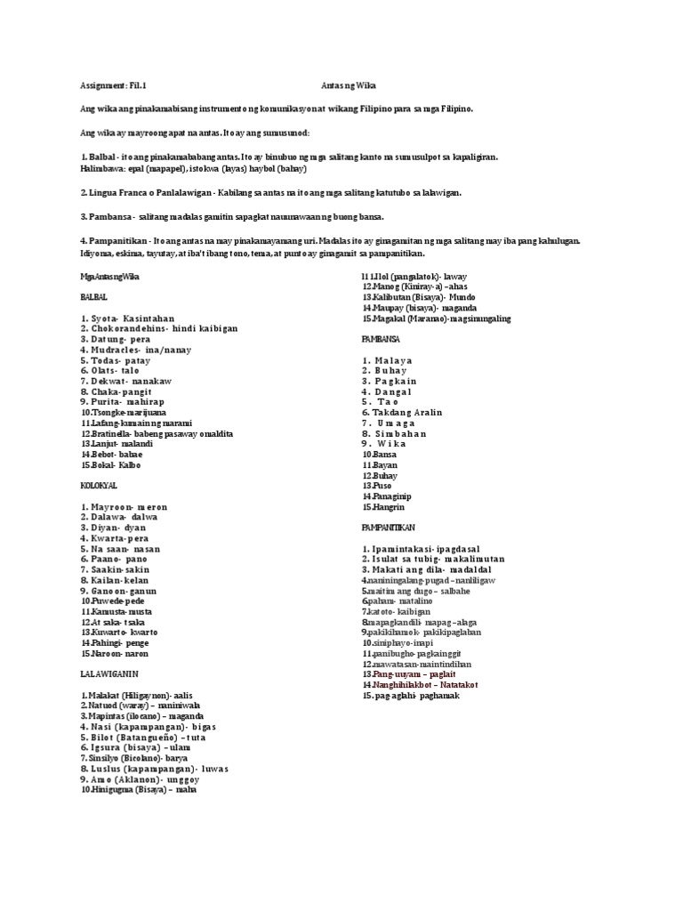 Ang Pinakamababang Antas Ng Wika Mga Salitang Balbal Docsity