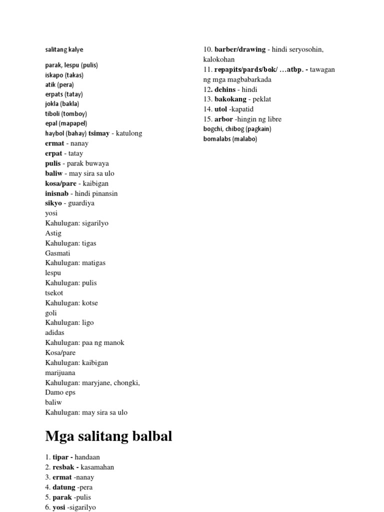 Halimbawa Ng Balbal Mga Halimbawa Ng Balbal Filipino Street Slang