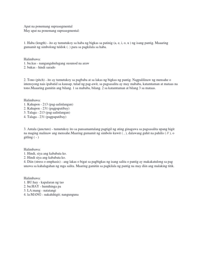 Sa halipsinisimbolo ito ng notasyong phonemic upang malaman kung ano ang pagbigkas. Bukod rito ang ponemang suprasegmental ay naglalarwan rin sa makahulugang yunit ng tunog na karaniwang hindi tinutumbasan ng mga letra sa pagsulat. Home kahulugan at halimbawa ng hinto o antala.