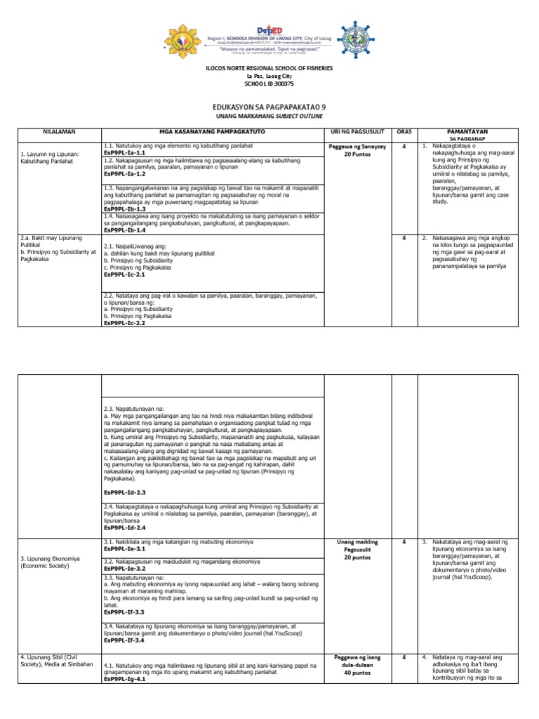 Ang ating mga pamilya ang nagsisilbing unang guro sa atin. 111 Quarter Content Standards Performance Standards Most Essential Learning Competencies Duration K to 12 CG Code Prinsipyo ng Subsidiarity at Pagkakaisa nilalabag sa pamilya paaralan baranggaypamayanan at lipunanbansa gamit ang case study. Ito ang tatlong pamantayan.