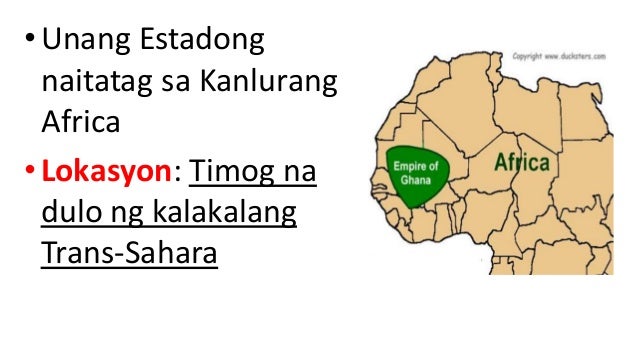 ANG KALAKALANG TRANS-SAHARA 3000 BCE isang masaganang kalakalan ang umunlad sa pagitan ng HILAGANG AFRICA at kanlurang SUDAN ang rehiyon sa TIMOG NG SAHARA. Bumuo ng sariling kahulugan ng salitang bansa. Nagkaroon sa Ghana ng malaking pamilihan ng iba-ibang produkto tulad ng ivory ostrich feather ebony at ginto.