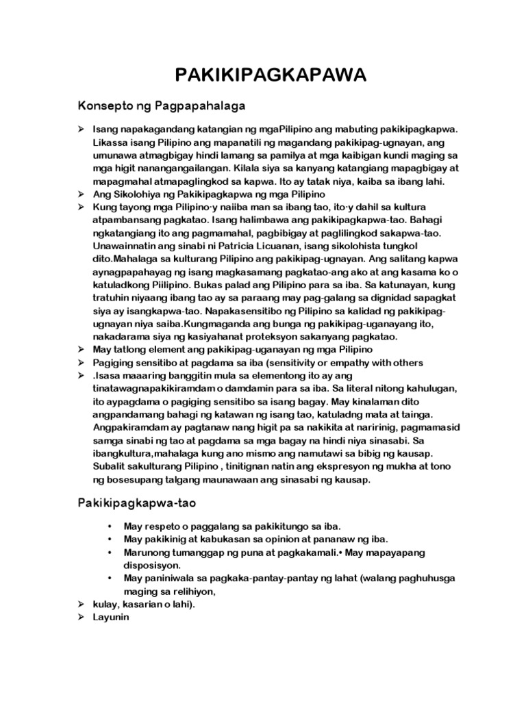 Pakikipagkapawa Konsepto Ng Pagpapahalaga