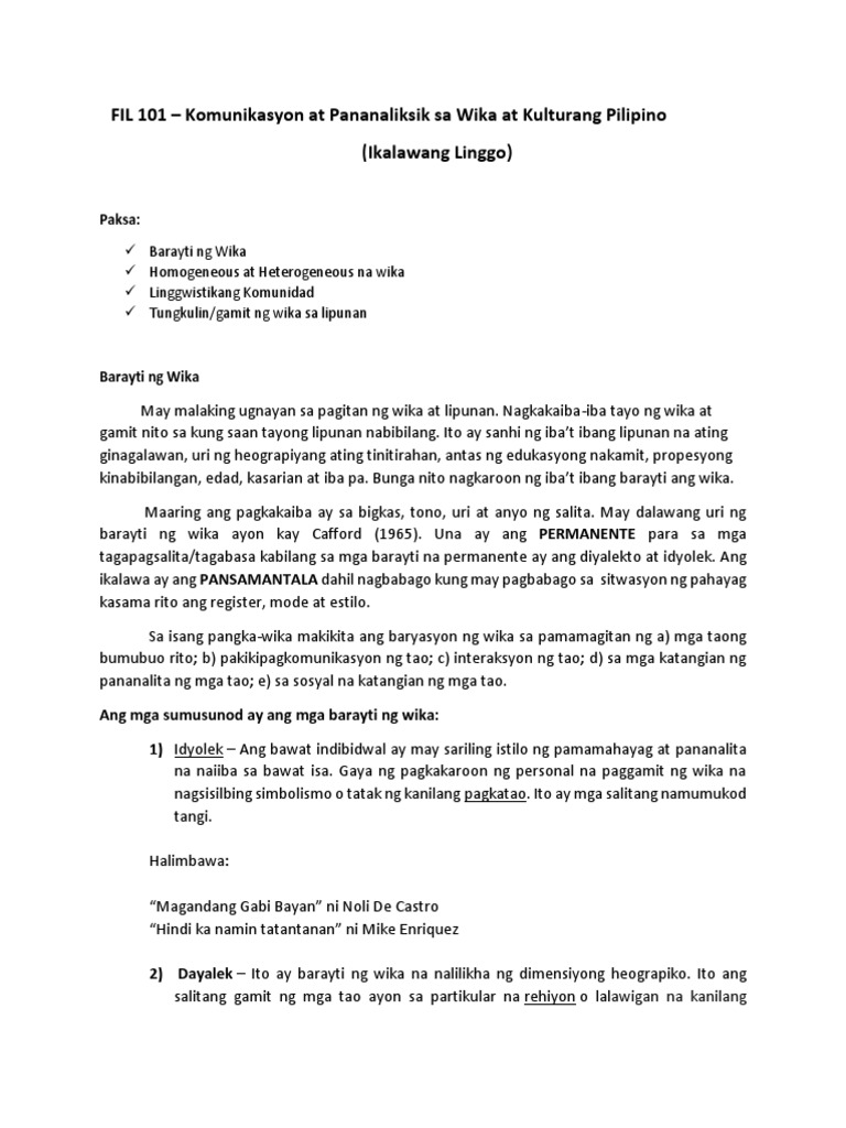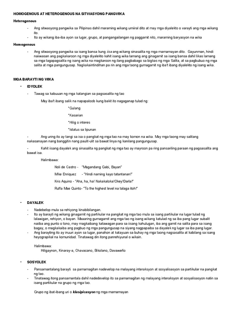 Doc Varyasyon O Barayti Ng Wika Homogeneus At Heterogeneous Na Wika Grezel Caspe Academia Edu