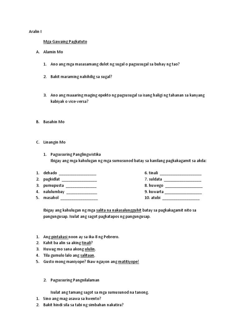 Human translations with examples. Punan ng sagot ang talahanayan sa pamamagitan ng pagbibigay ngkahulugan ng acronym na SPEAKING batay sa paliwanag ni Del Hym. Asked By Wiki User.