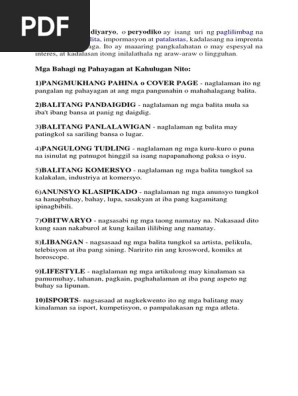 Mga Bahagi Ng Pahayagan At Kahulugan Nito Journalism News