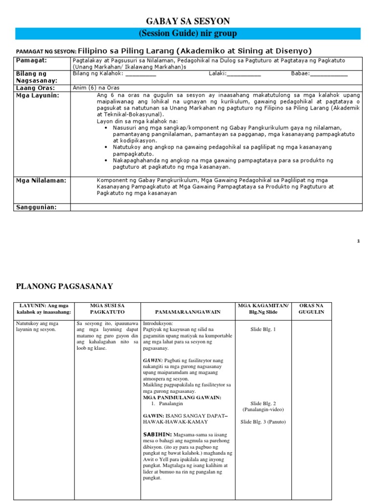 Gabay Sa Sesyon Final Akademik At Sining Docx