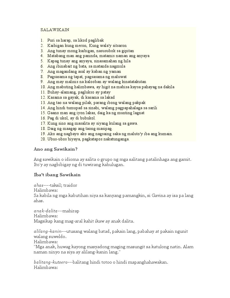 Sawikain 100 Halimbawa Ng Sawikain At Kahulugan