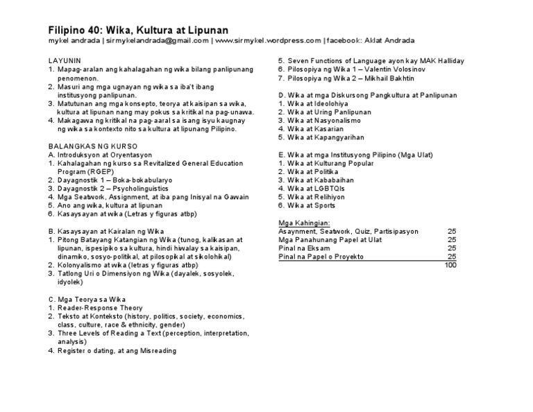 Lecture About Kontesktwalisadong Komunikasyon Docsity
