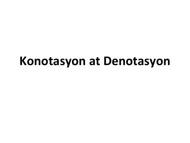 DENOTATIBO AT KONOTATIBO Sa paksang ito tatalkayin natin ang ibat-ibang halimbawa ng denotatibo at konotatibong mga salita. Konotasyon at Denotasyon 2. Ang denotatibong mga salita ay ang literal na kahulugan nito at makikita sa diksyonaryo.